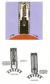 LLEGANDO EL LIMITE DE DESGASTE DE LA ESCOBILLA ,EL SISTEMA INSERTADO EN EL INTERIOR SALE Y LEVANTA LA ESCOBILLA DEL COLECTOR, INTERRRUMPIENDO ASI EL PASO DE CORRIENTE Y PARANDO EL MOTOR.